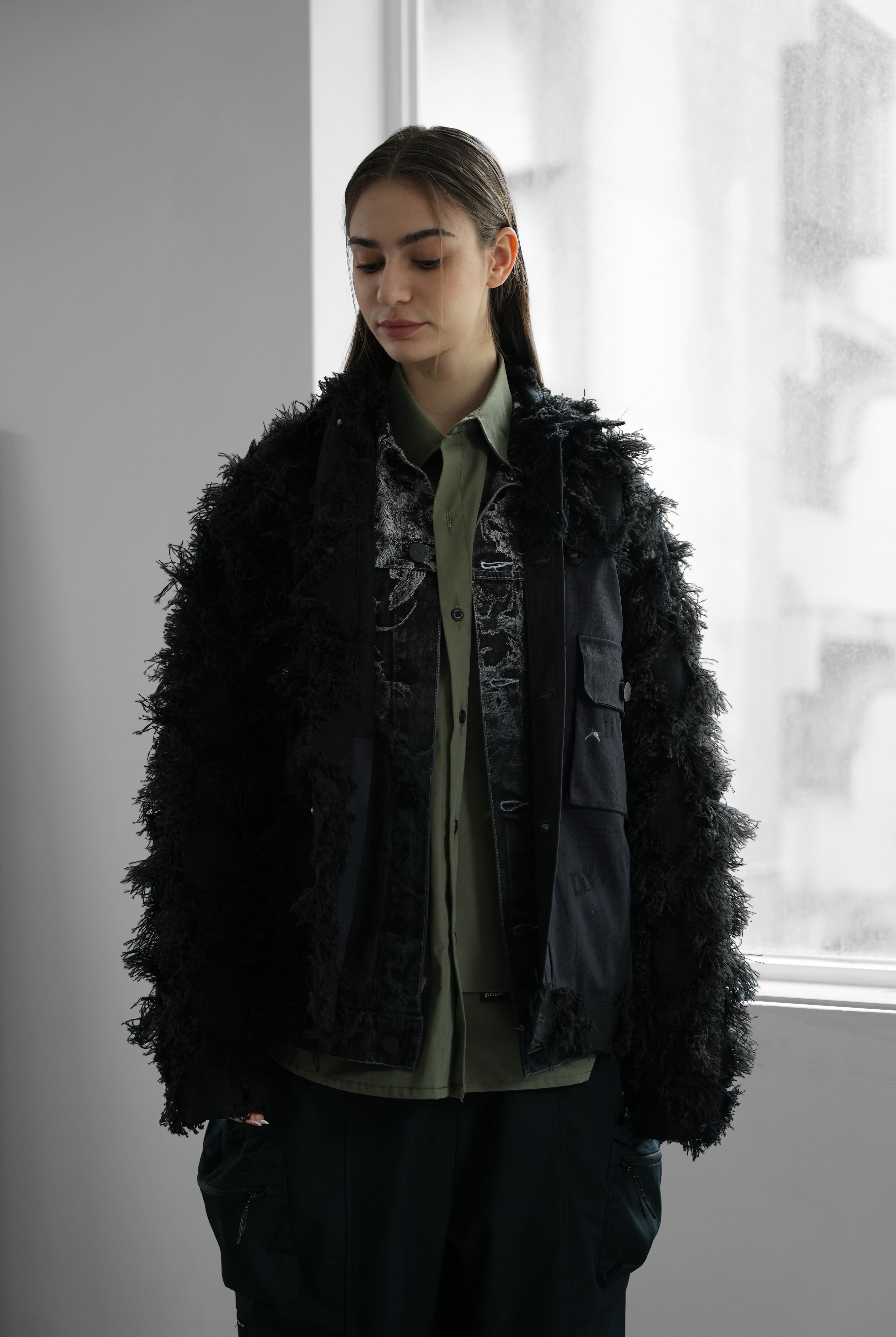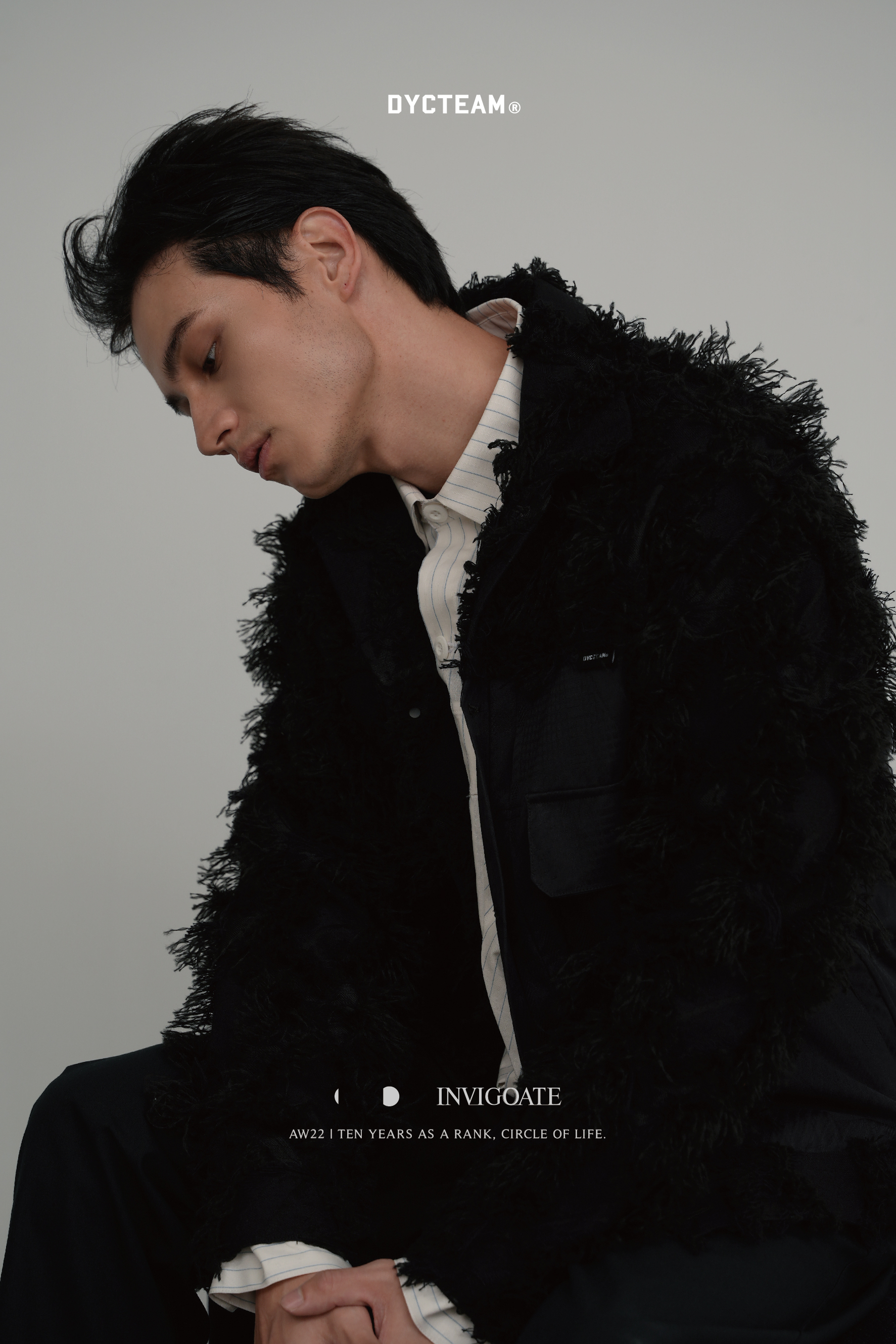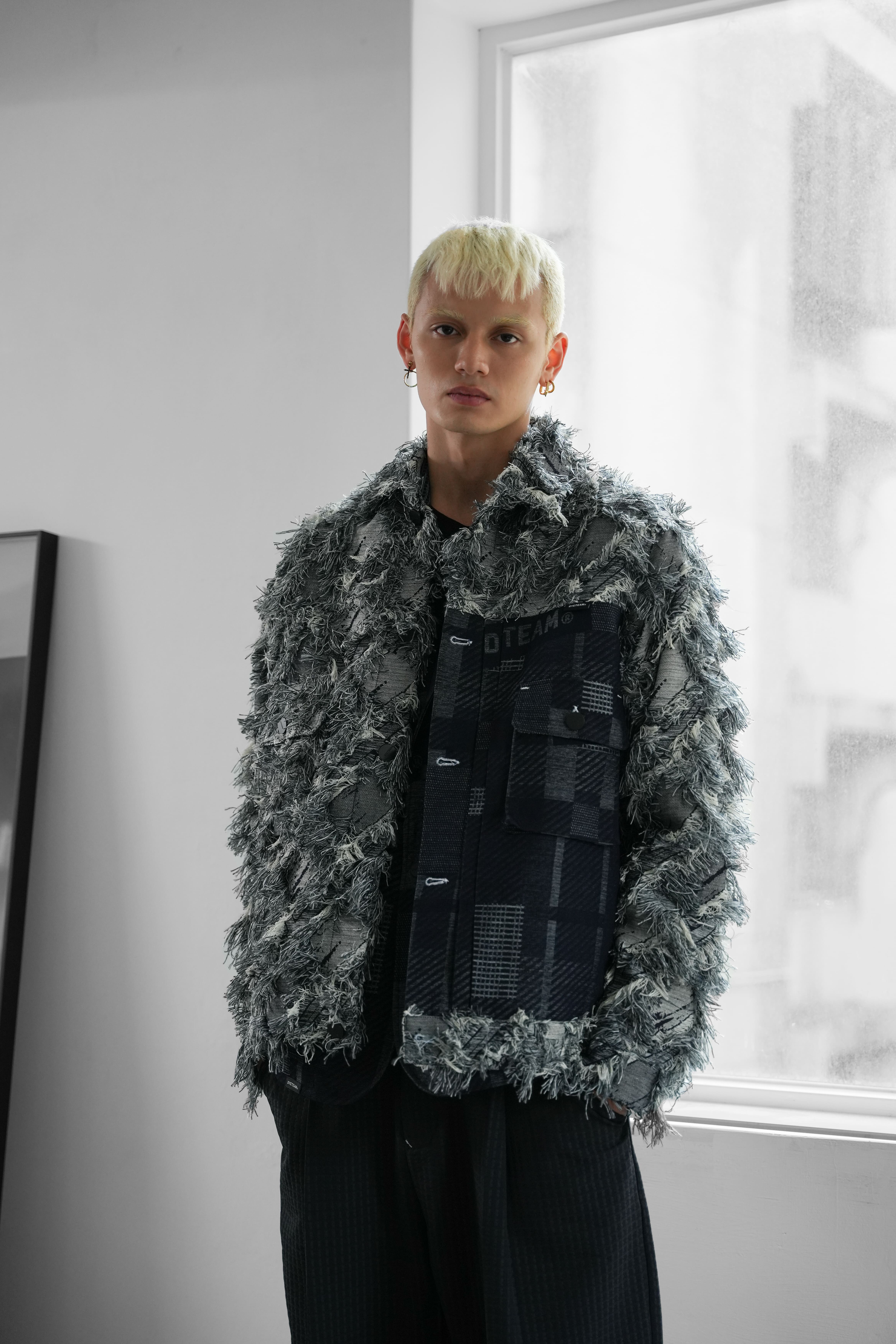 在Blue系列中除了經典的緹花設計,先前提到的全新面料更是打造出超吸睛的抽鬚外套!