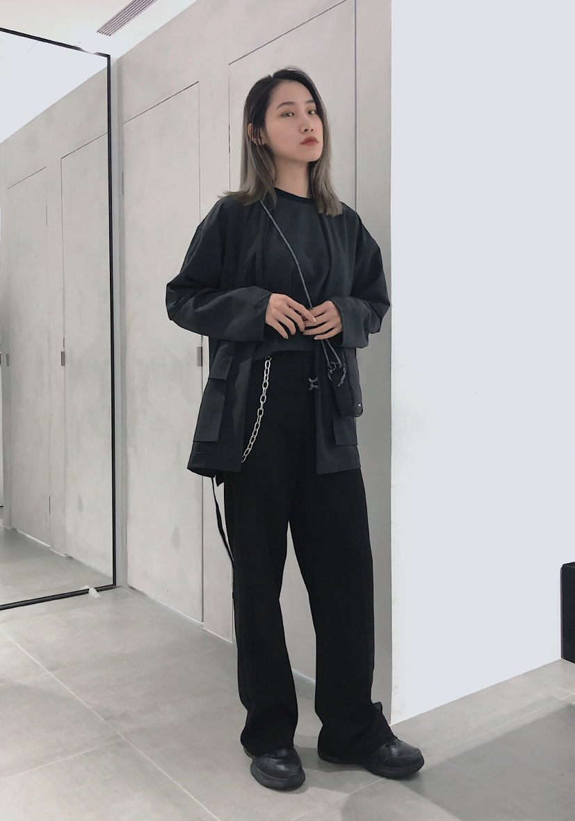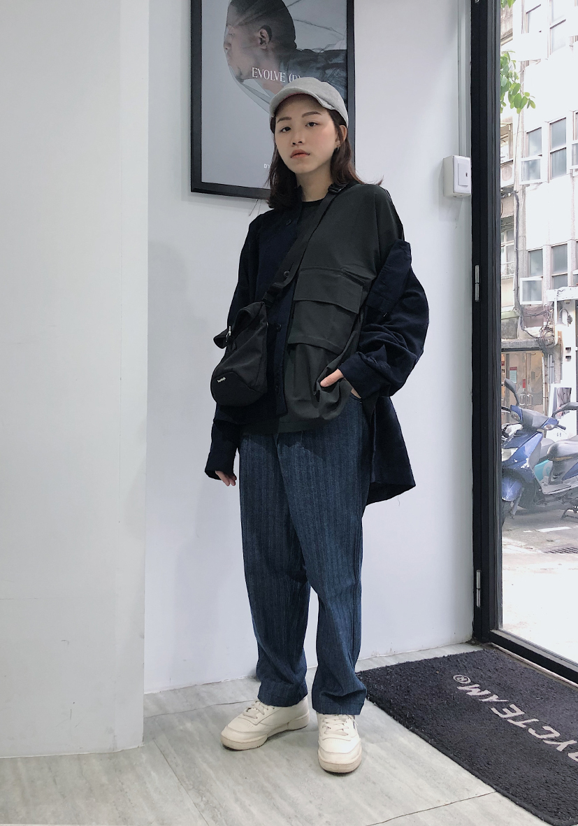 褲子也能呼應的話就可以有一致的風格,而且這條褲子也可以說得上百搭,牛仔褲都怎麼搭,那就同樣比照辦理。