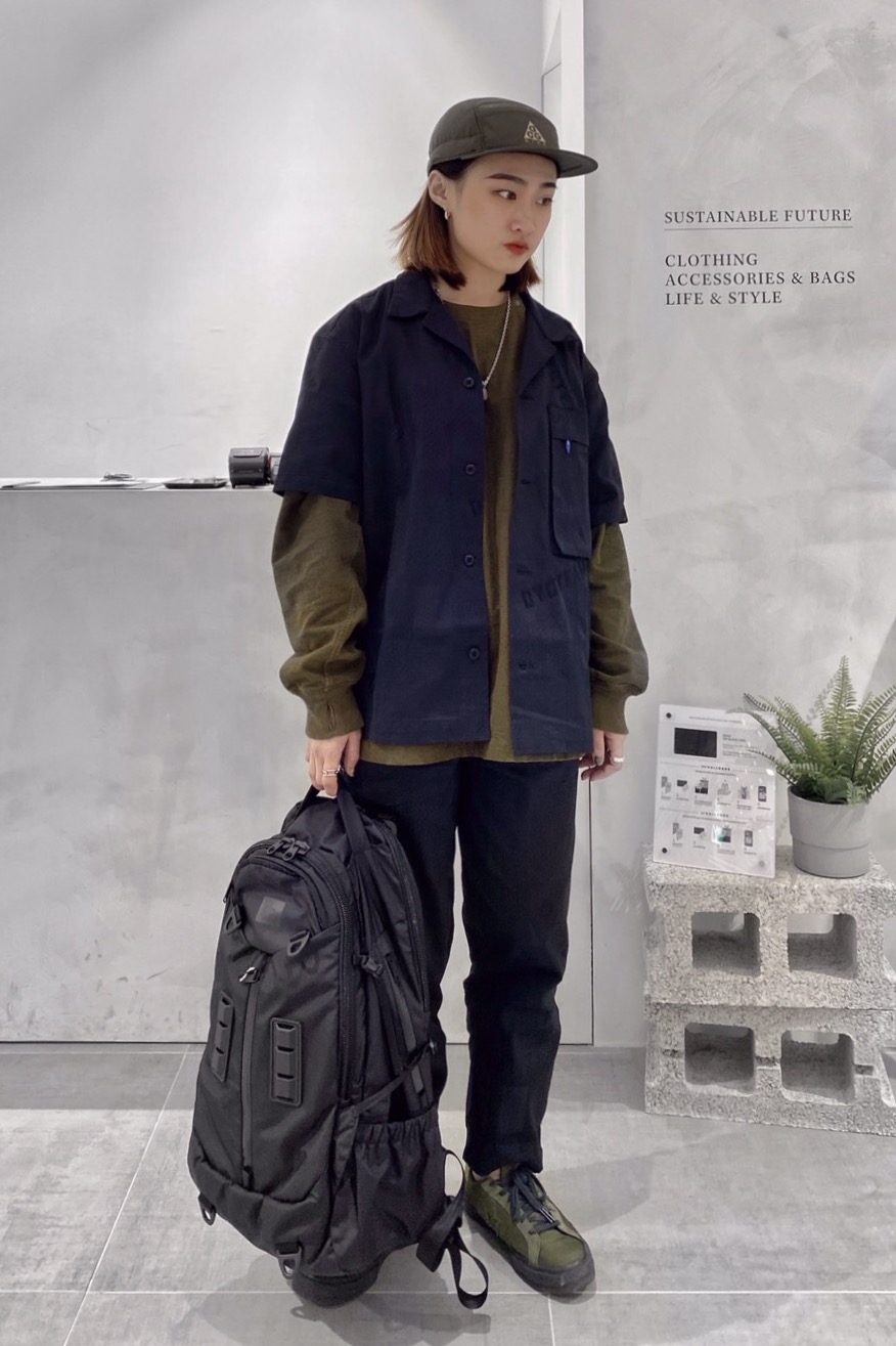 內裡短袖夏天穿透氣前面也有口袋做出一點造型,罩衫有改良和服的樣式,有修身的效果,同時具有抗uv的功能,隨意搭配下班身都很好看!包包選擇Topologie的輕量材質小包可以放錢包鑰匙手機就能輕便出門,適合夏天想要個性路線但又不會很悶熱的穿搭。