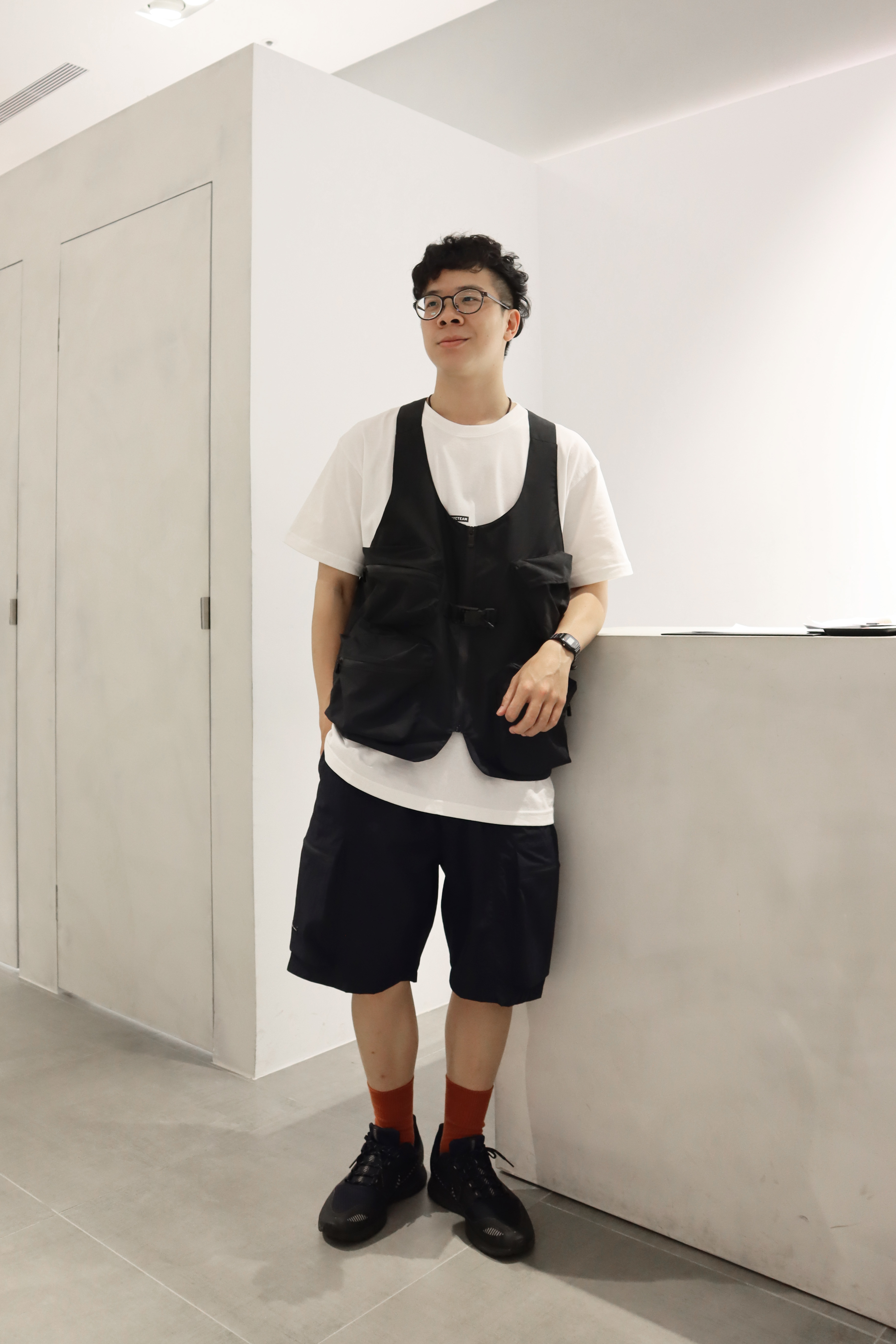 這次用 Recycle 環保面料做成的短褲,除了布料本身出色的涼爽性外,版型也是我非常喜歡的點,褲管採用比較寬鬆的輪廓,鬆緊帶的設計也能視個人喜好從兩個尺碼挑選自己喜歡的風格,合身點的M號能顯現出戶外和陽光的感覺,相對寬鬆的L能營造出更強烈的風格感,適合對搭配和輪廓掌握已經相當上手的朋友。