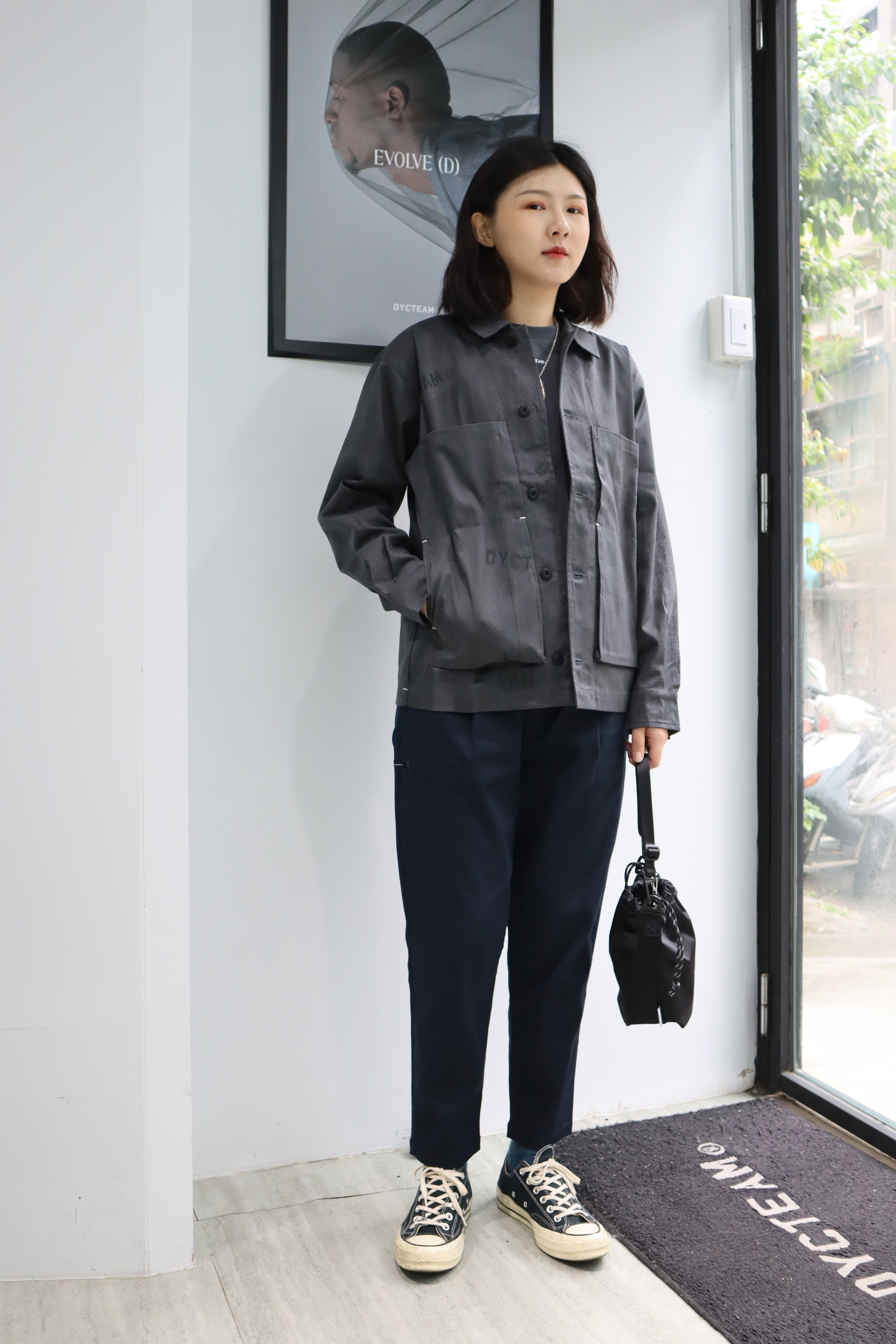 今日穿搭整體使用藍灰色系去使整身穿搭看起來更和諧,灰色有機棉外套色調特別在不同的光照之下會有不同的色澤光感,特殊的布料點綴整身穿搭,並且再搭配Nozzle Quiz繡藍色襪子去與上身呼應,讓整個穿搭充滿繽紛感,T-shirt本身材質舒適且柔軟,因本人害怕曬黑,所以穿搭上會再搭配一件外套,有機棉外套保有單寧牛仔布料,穿起來硬挺且透氣,讓整個人很有精神。