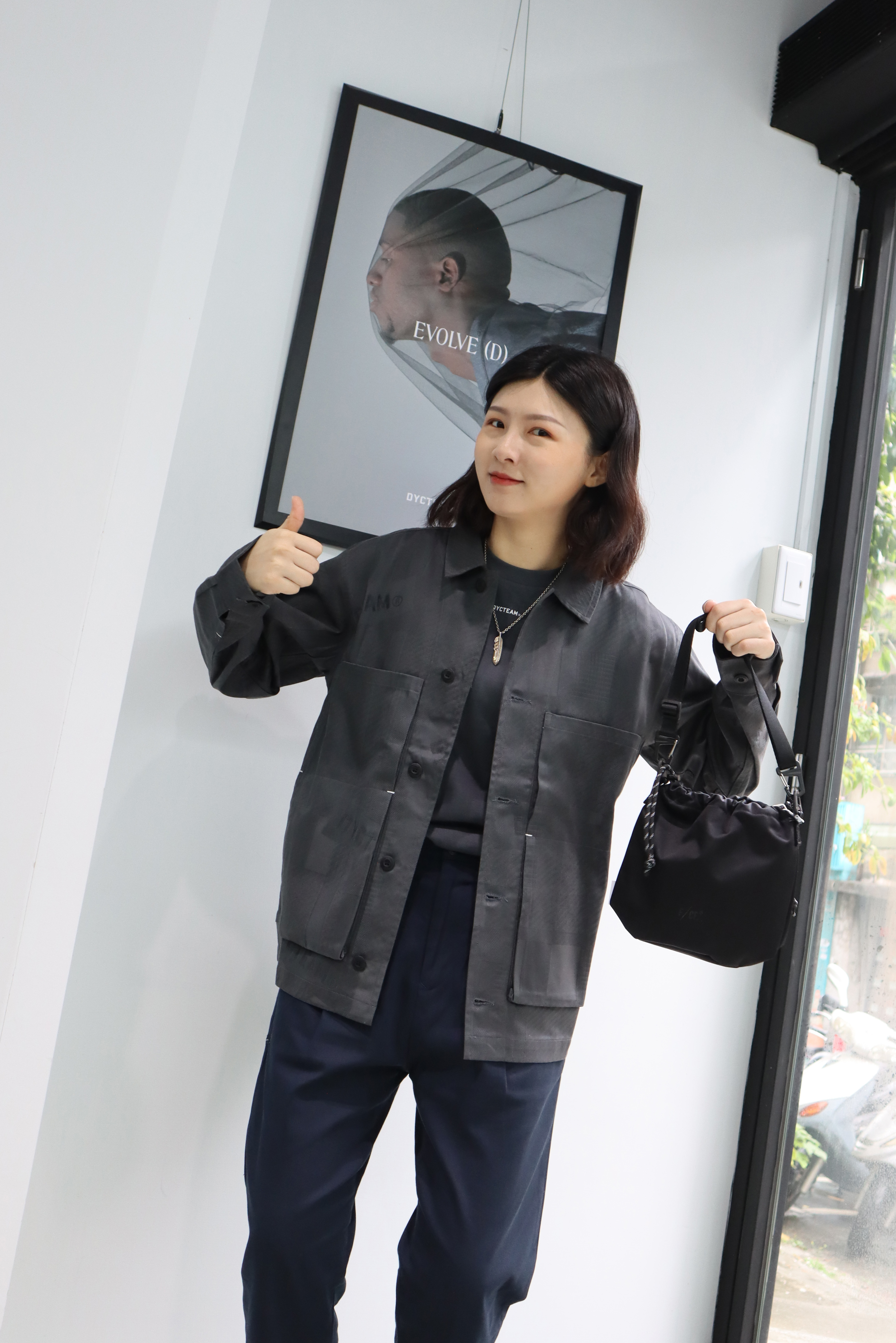 對出門不需要攜帶很多東西的男生來說,水桶包已經相當夠用,日系的輪廓設計,加上包款本身帶有光澤的緞面材質也非常好做搭配,有些機能感很重的布料,在搭配上不稍微花點心思有時候會略顯突兀,但緞面材質很少有這種問題,因為它本身就是富有都會感的,對生活在大城市裡的我們來說在一年四季中都是很好搭配的配件。