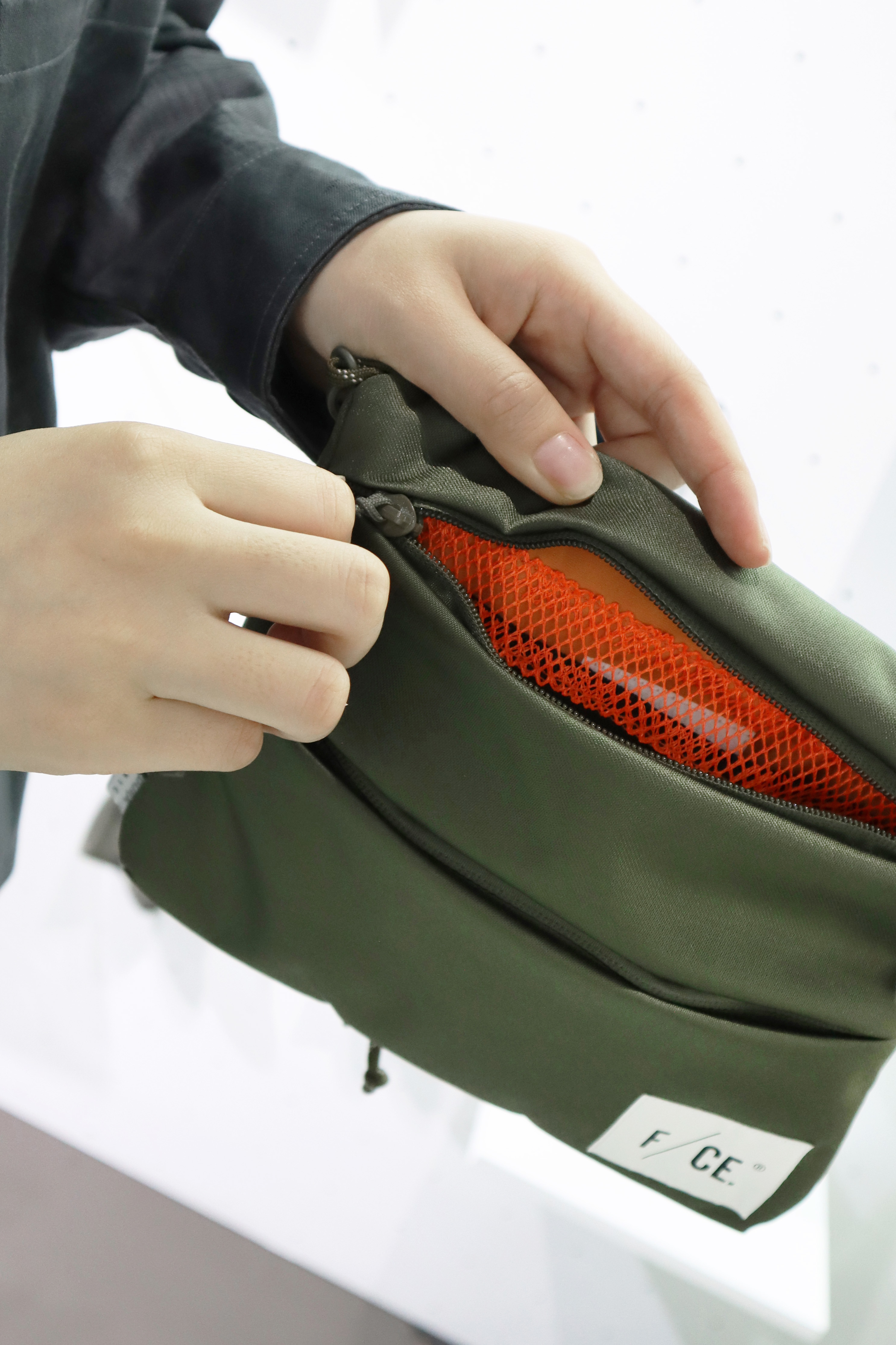 F/CE本次的新品真的太可愛!防潑水面料以及容量足夠我裝上我的化妝品及小物,觸感很舒服外也很百搭,除了黑色款示之外還有綠色,綠色內裏為橘色,我相信許多嘗試工裝穿搭的一定會很喜歡!