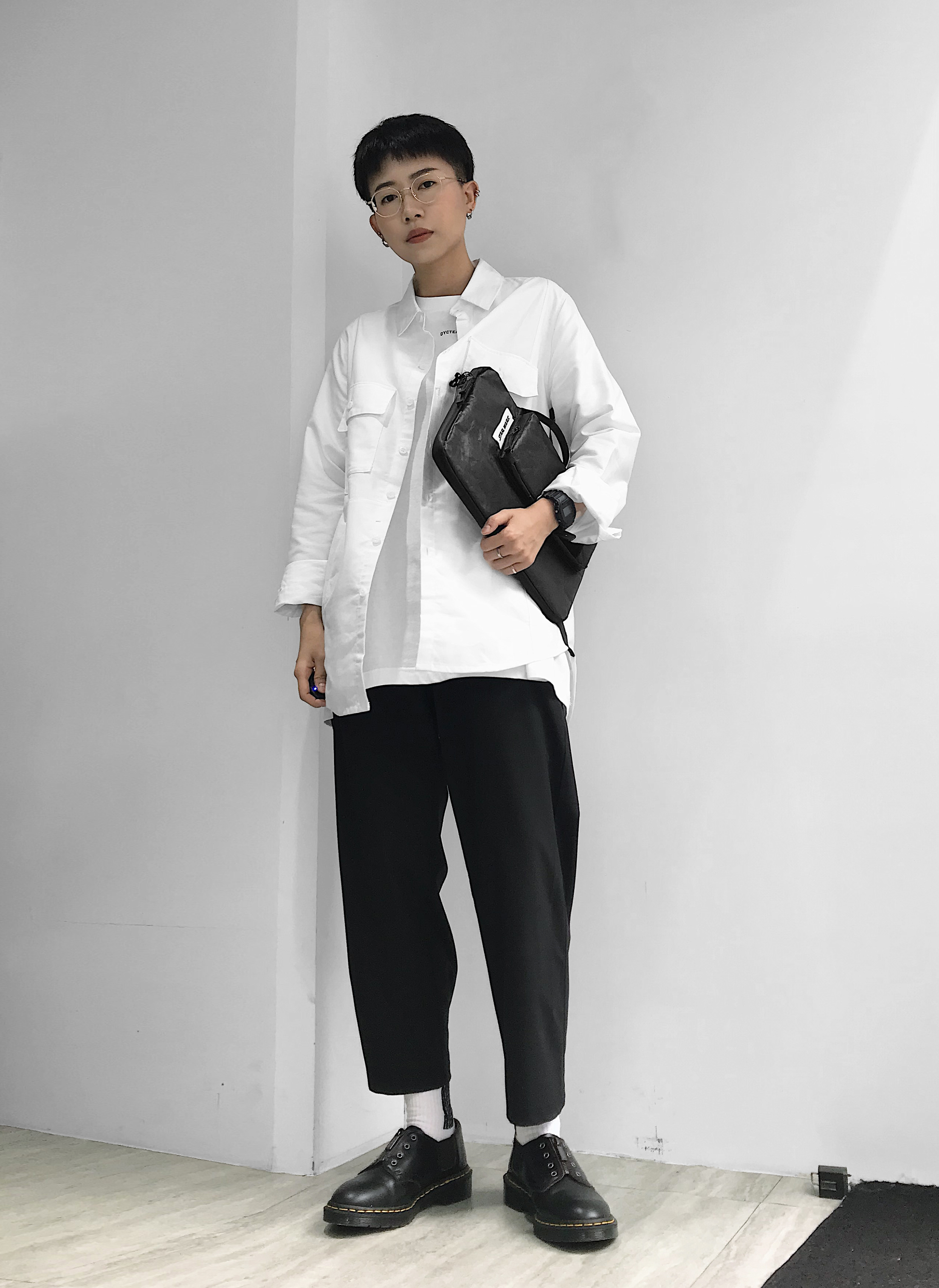我身高較矮一些,在穿搭上會習慣性的把上衣紮起,讓下身比例拉長,這點完全可以根據每個人的身型來決定與否,但是必須記得上衣的OVERSIZE幅度太大,或是明明沒有特別寬但是偏長版(這邊外搭除外),很容易讓自己成為64身,若有著裝外搭,也必須注意門襟敞開的幅度太小或是整個拉起來,一不小心就是一根柱子。