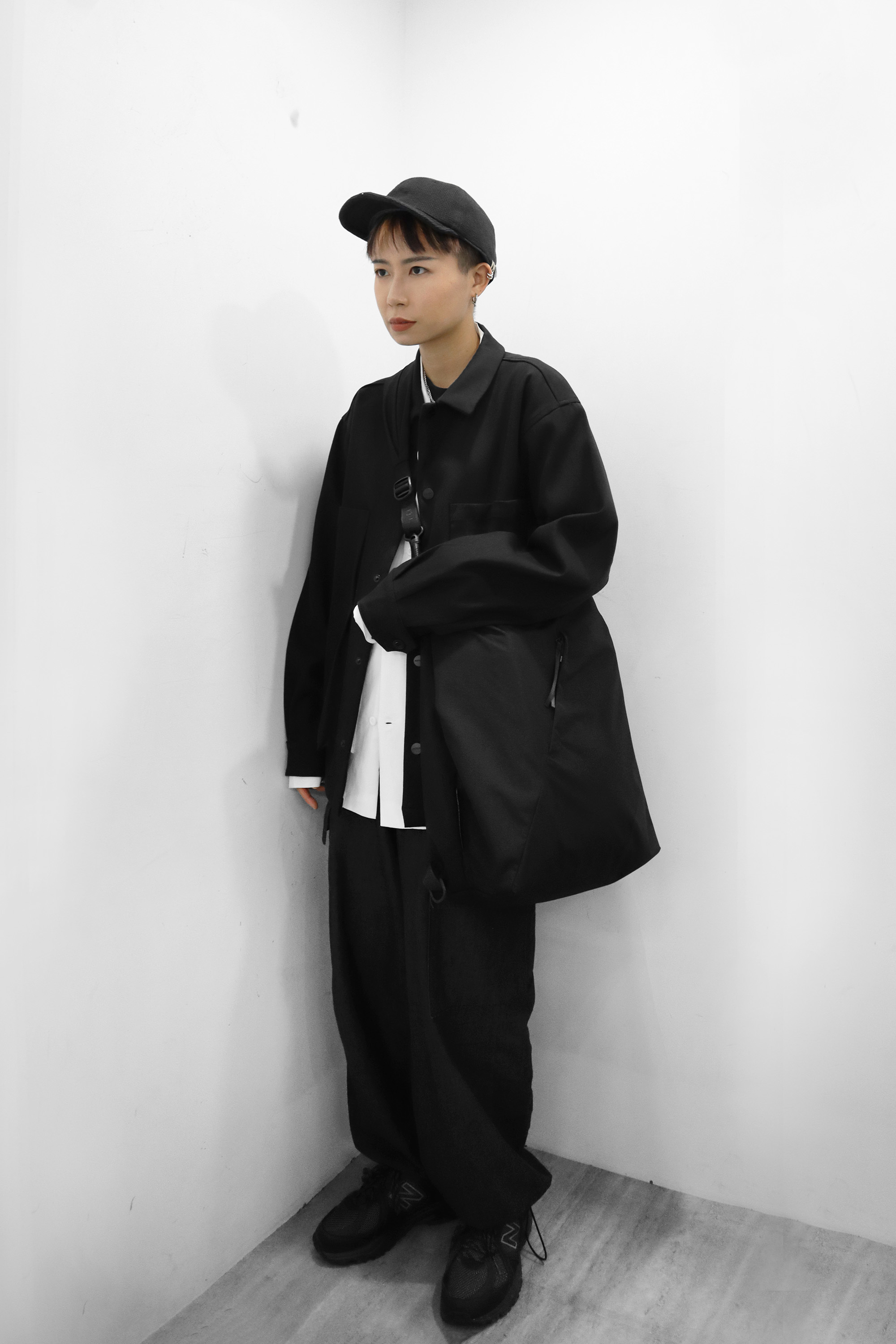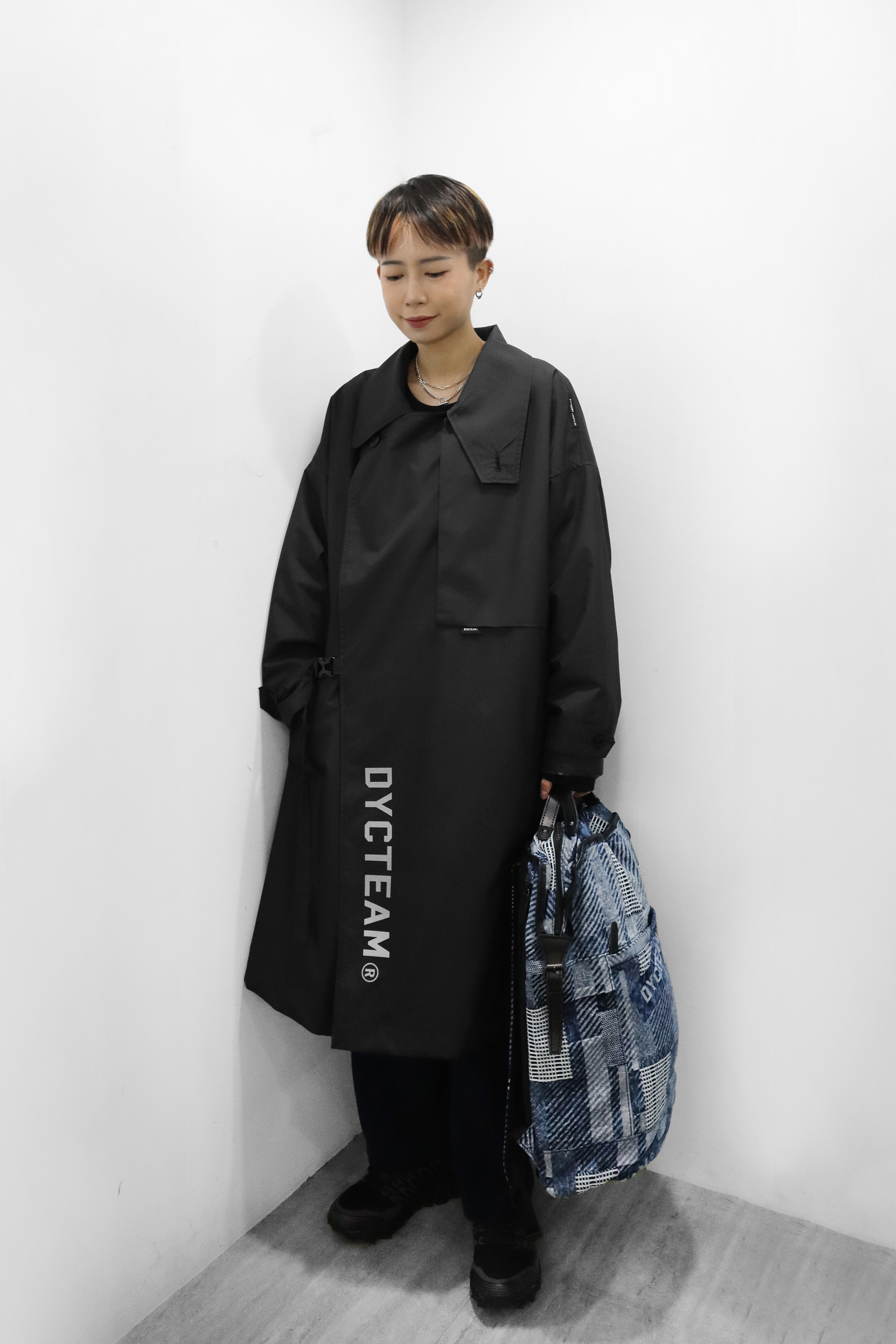 經典黑白色系搭配,外套為DYCTEAM 口袋拼接外套,使用防潑水混羊毛面料製作,既能保暖也能防潑水,對於時常遇雨的秋冬季節來說非常實穿;包款為SEALSON本季新品,利用背袋的更換可做多way使用,大容量設計通勤、業務、上課都很合適。