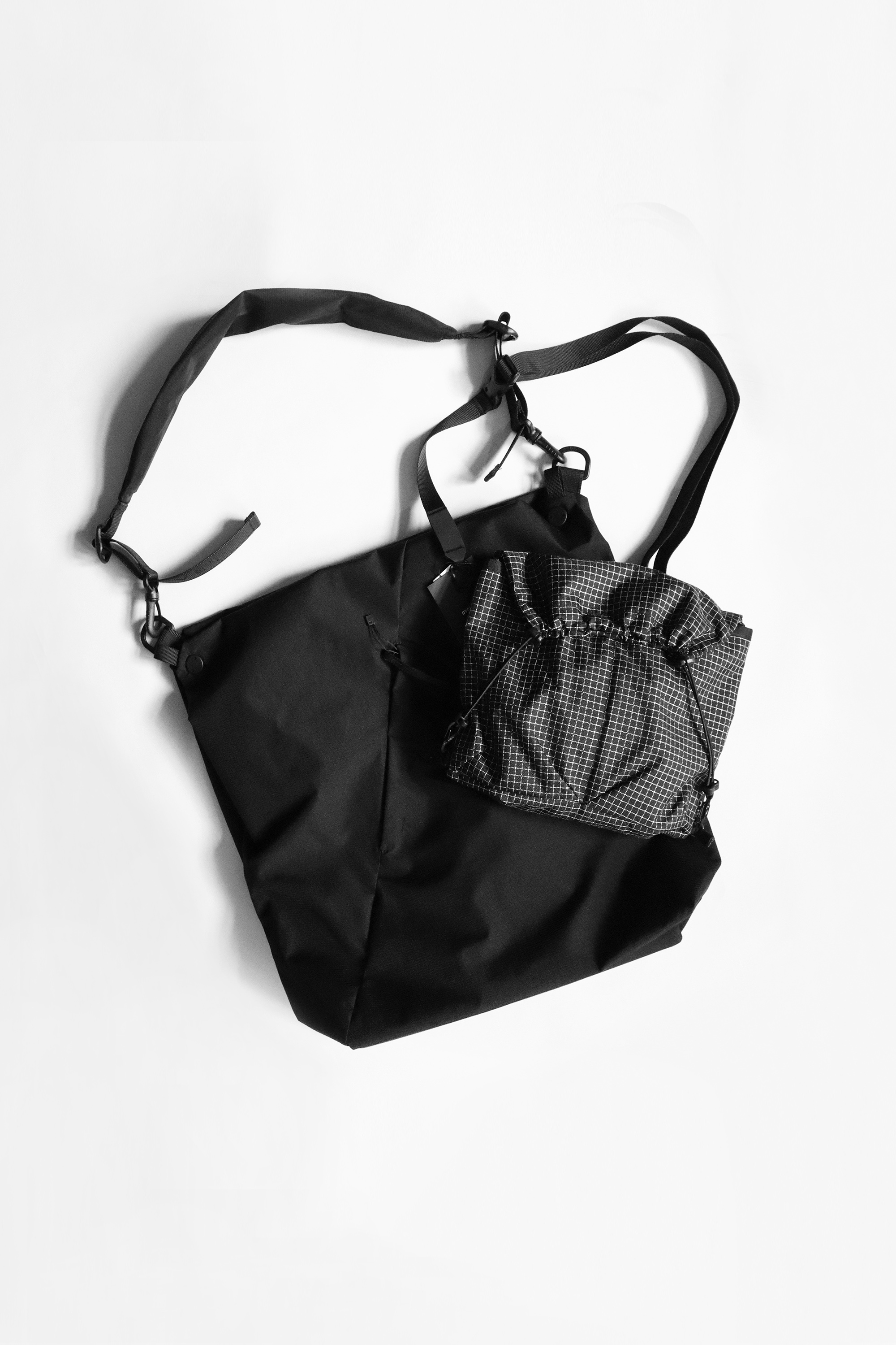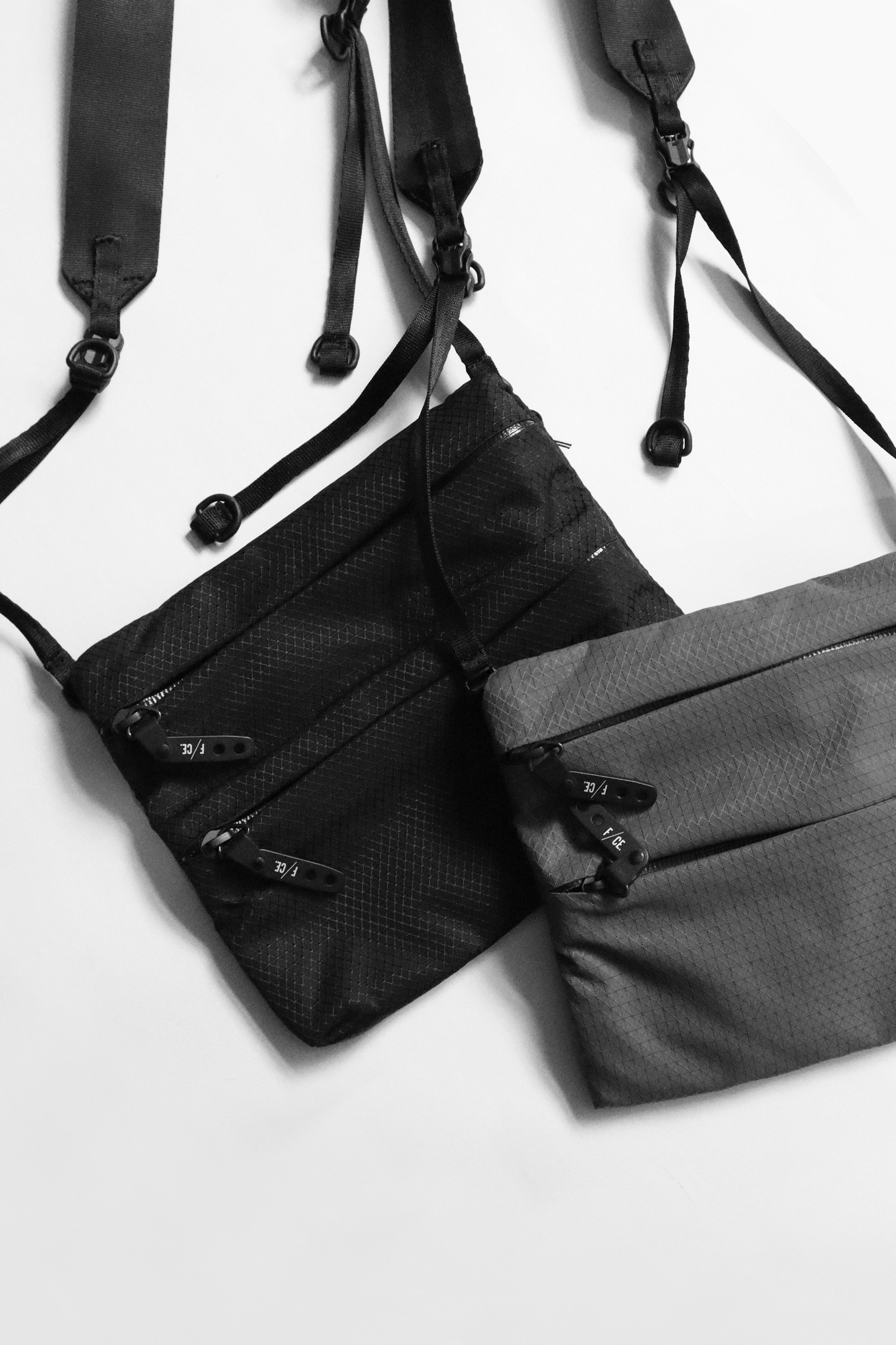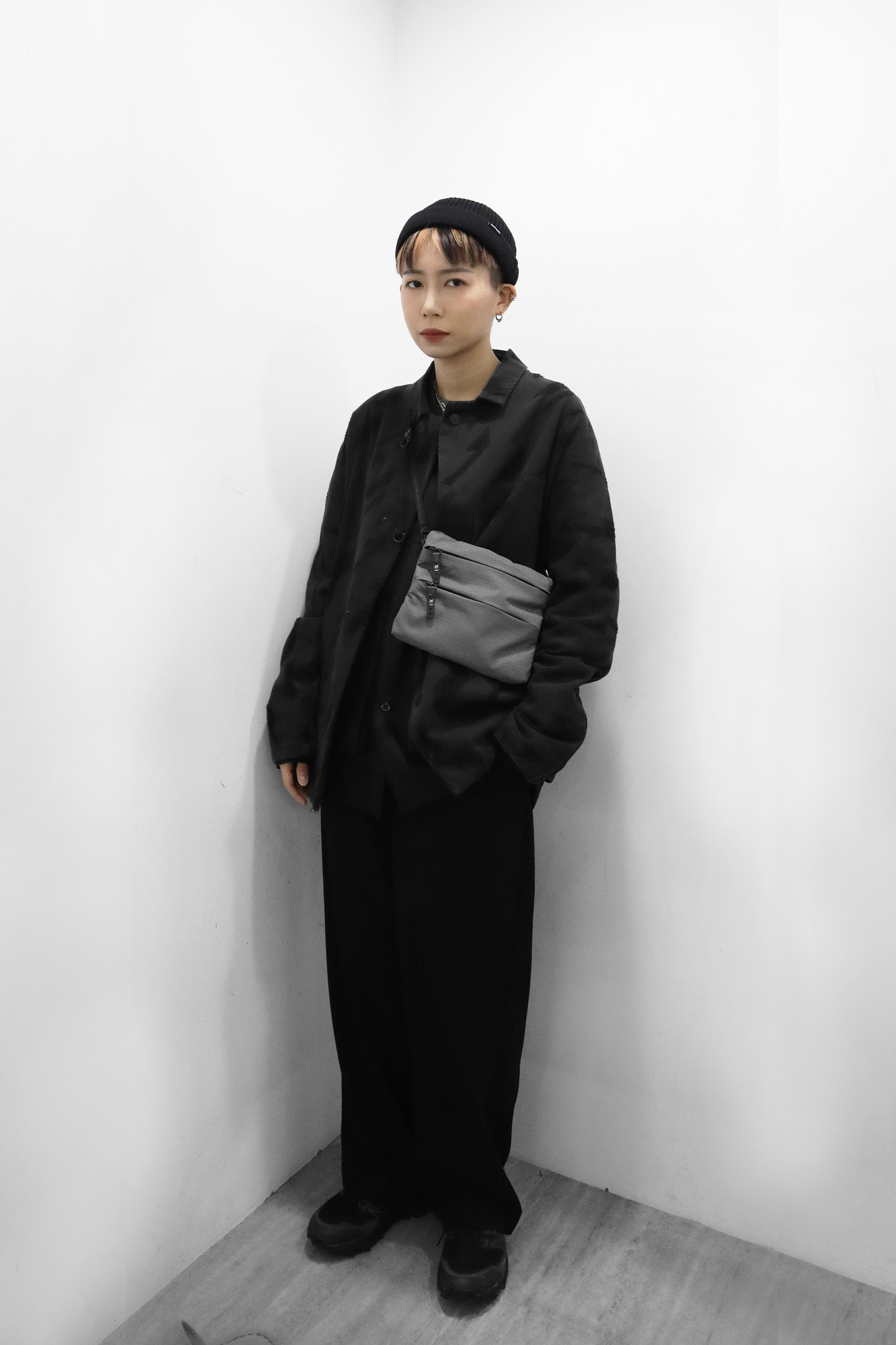 想要全黑又不想一片黑的朋友可嘗試用材質做區別,黑色緹花丹寧外套的自然抽鬚效果有別於一般黑丹寧色澤,內裡搭配簡單搭配棉TEE即可;本季F/CE繼續推出新面料包袋,可調節背繩與便於手拉的扣環讓包袋在使用上更順手,還在物色小包袋的朋友推薦直接入手。
