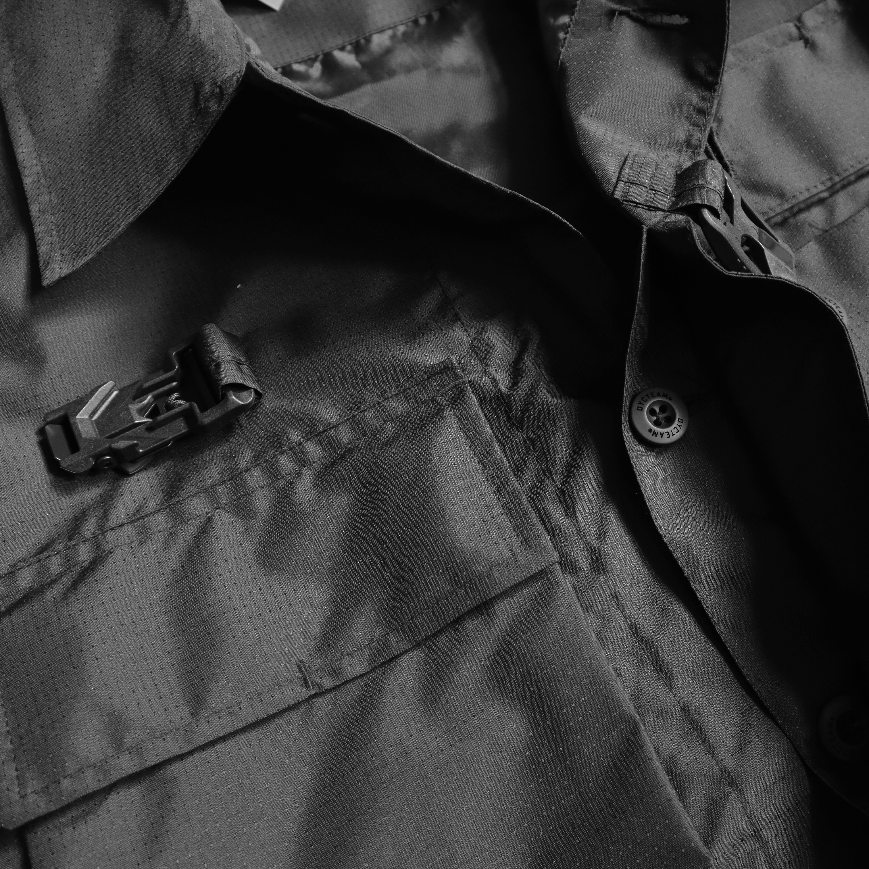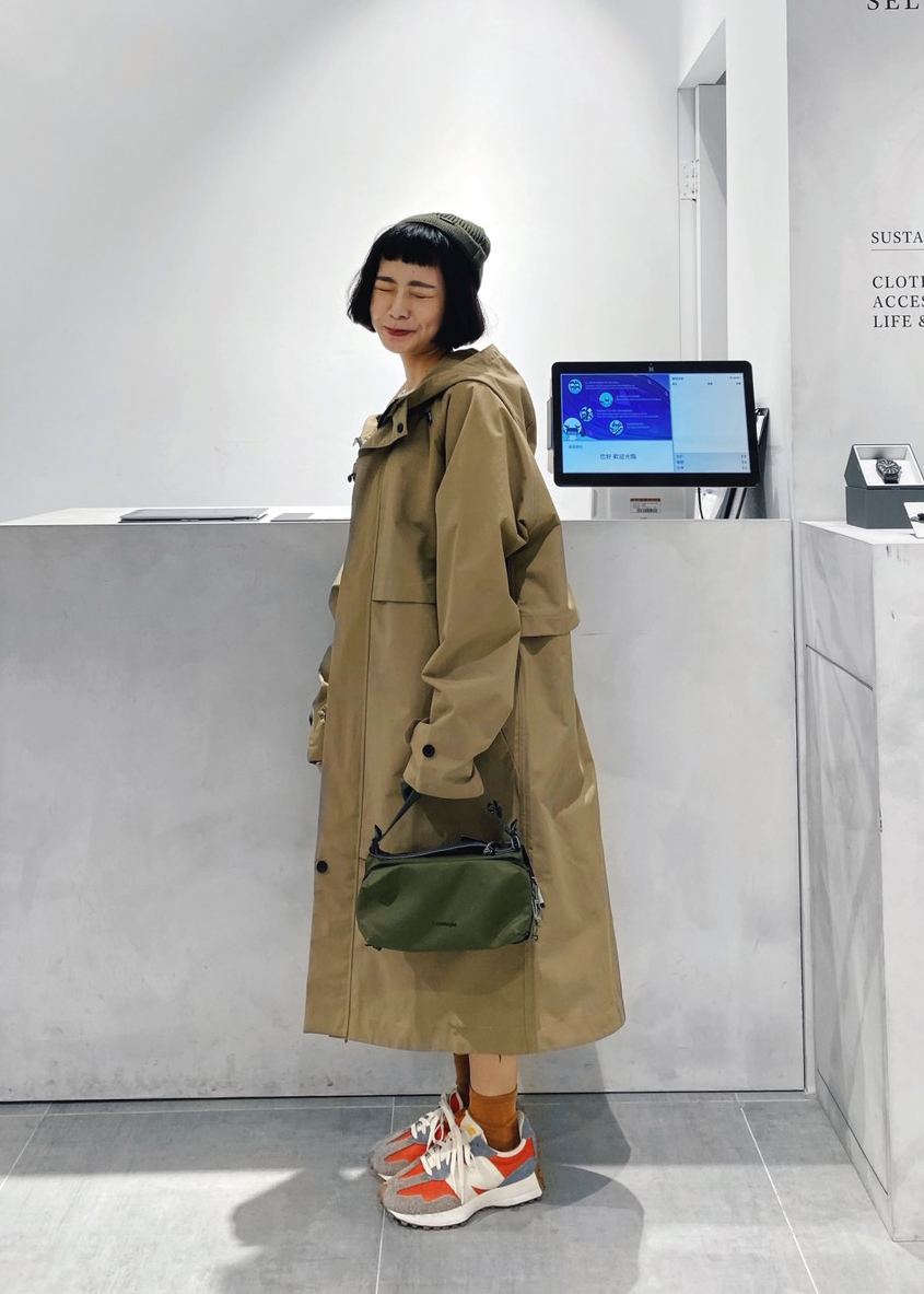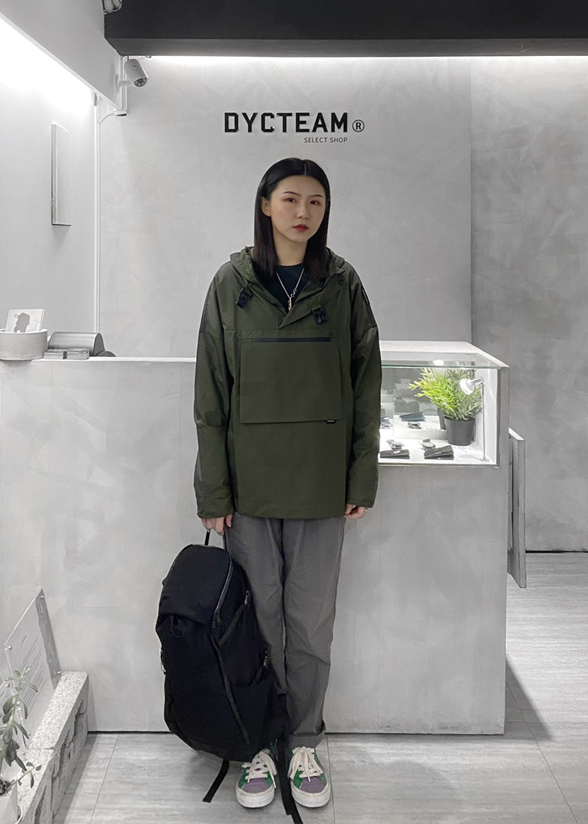 本次特色除了扣具的使用以外,在面料上也選擇使用寶特瓶回收再製纖維,其性能以及舒適度也非常優秀,STAFF多為做外搭使用,下身選擇稍微寬鬆、直筒的褲型,可將上衣拉鍊拉開與內搭做層次。