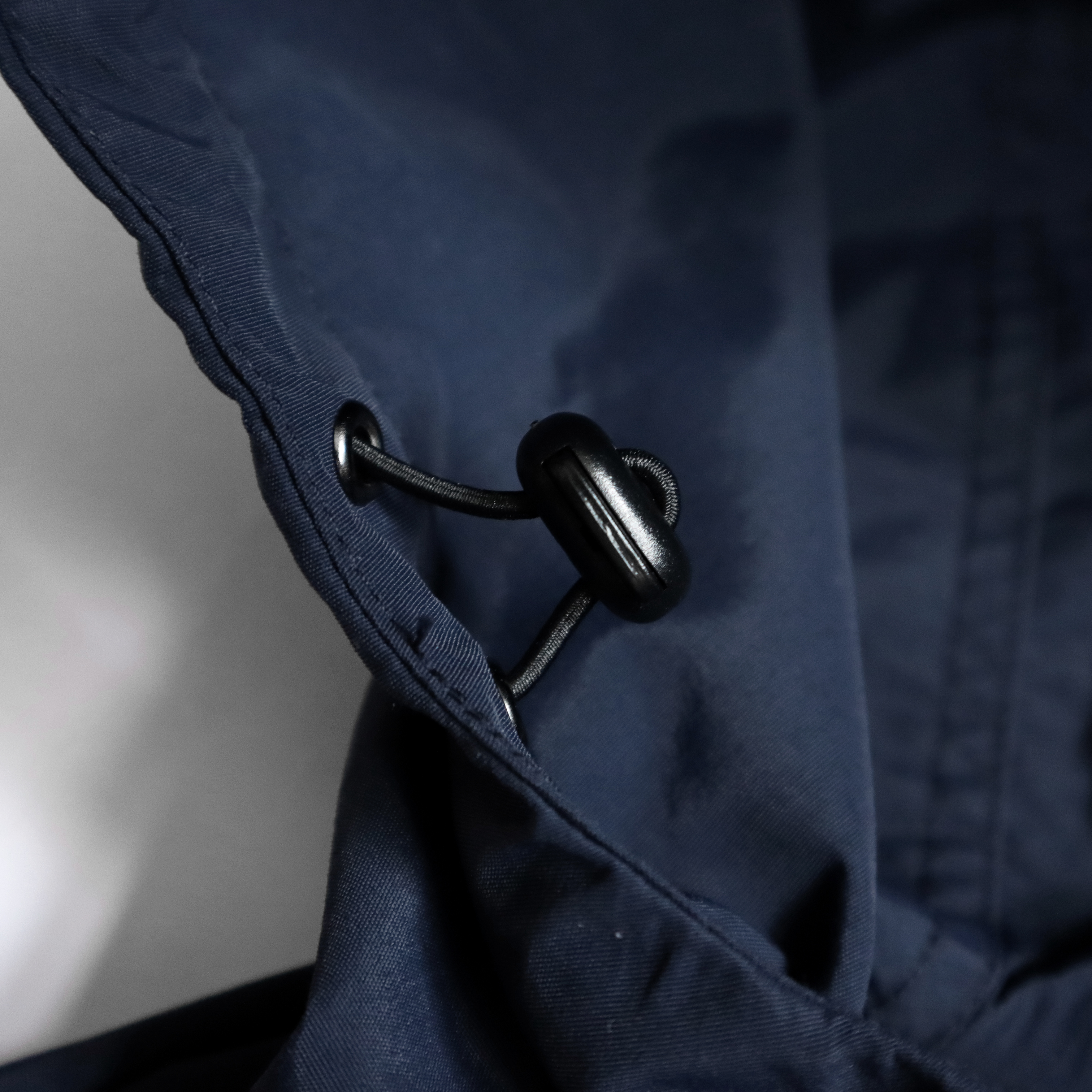 此款外套為三層貼合面料,結合了防水、透濕、透氣,寬鬆的版型以及無肩線設計能夠在內裡容納其他衣物,並且同時擁有足夠的伸展空間,解決了許多長版外套的厚重及不舒服感覺。