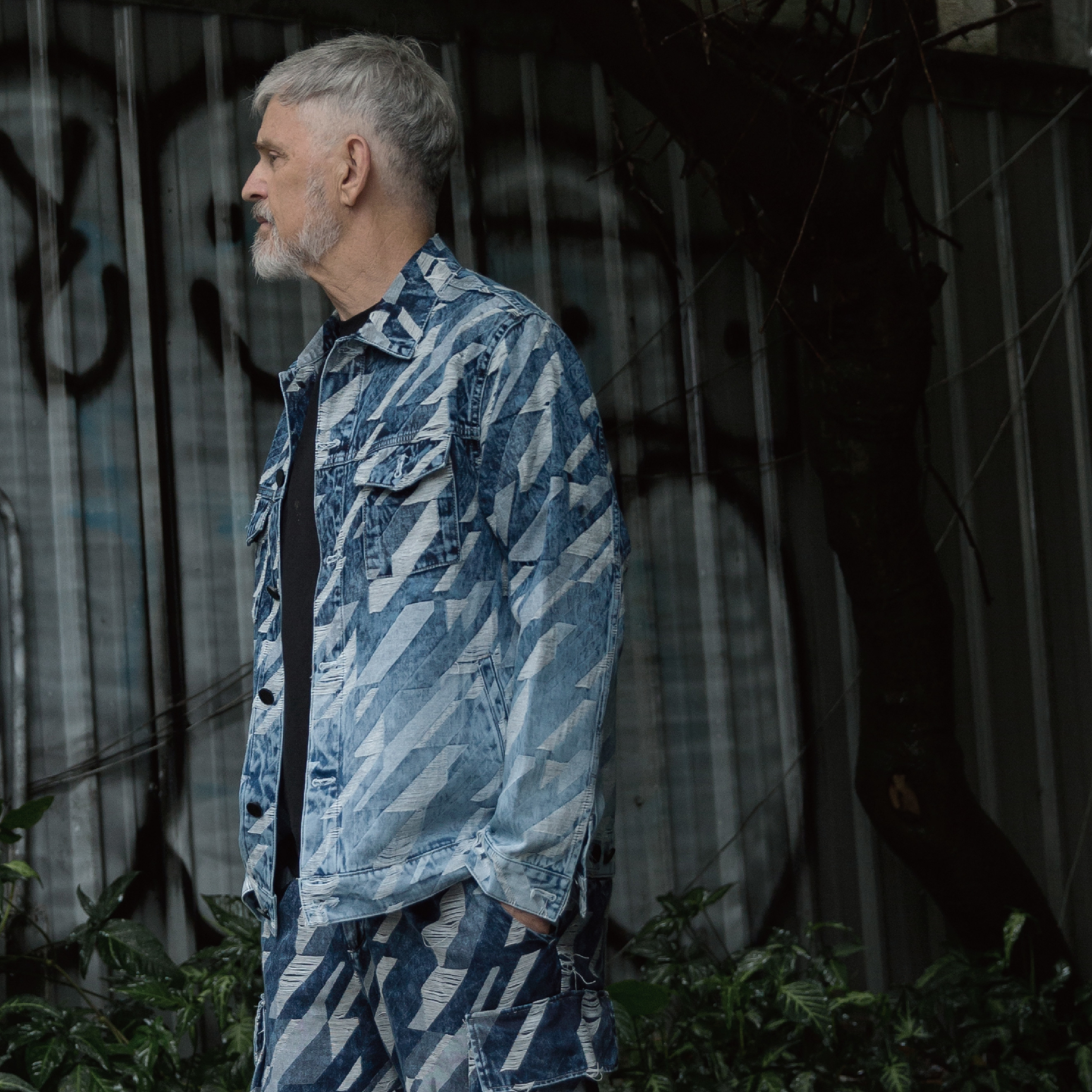 別具特色的「wear in Blue」系列,一直是DYCTEAM明星支線之一,大膽運用了華麗的藍染(Indigo)緹花(Jacquard)丹寧做為面料,透過耗時繁複的經緯紗組織紋路與單寧水洗規劃,創造一件件令人難忘的視覺。由Vernon展現的這套名為「noise Pattern」的五分袖襯衫與八分褲,則為本季「information overload」主題而產出的圖騰,低調又不失細節的同色規劃,不僅推薦給入門的穿搭型人,更推薦給喜歡低調又富有層次的成熟型人。