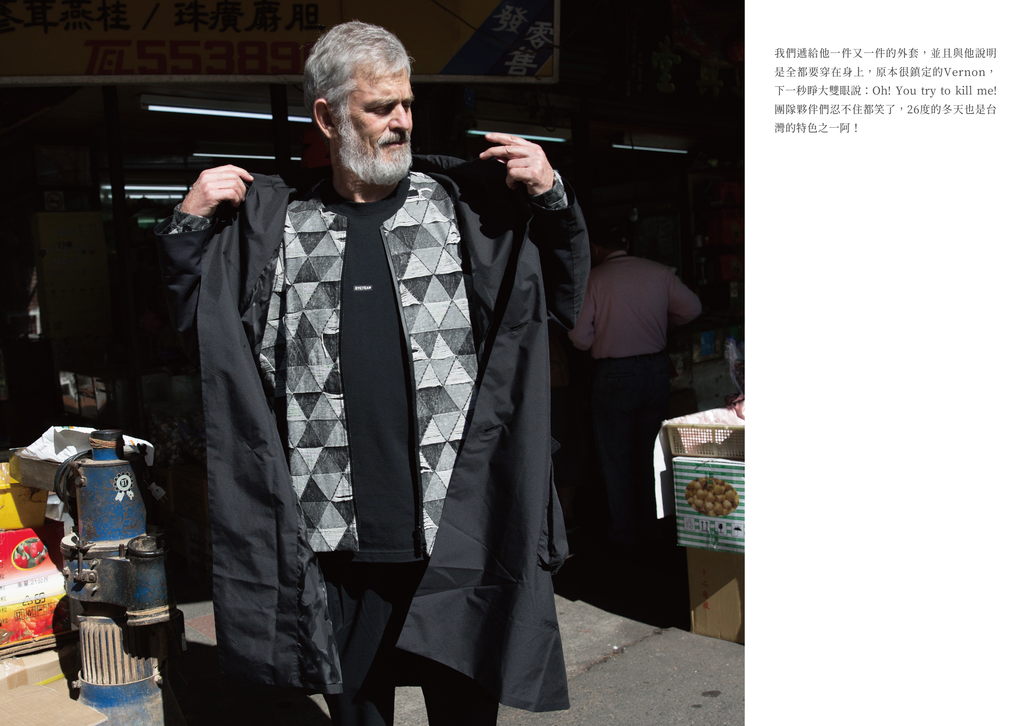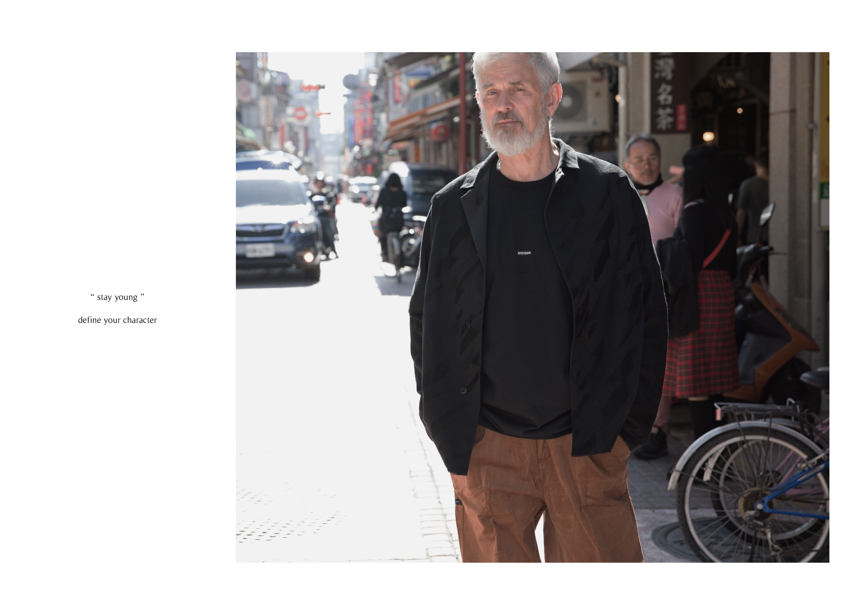 第一次來到大稻埕的澳洲大叔透露著好奇與驚喜地神情走在老街上,負責抓拍的snaplab滿身汗水卻仍享受著Vernon自在的每一瞬間;東方與西方的碰撞,色彩和文化的交流,豐富又吸睛的視覺層次都像是傳遞著「文化 x 生活 x 態度」的訊息,每個美好的鏡頭,都是在回應著DYCTEAM品牌的初衷與對穿搭的熱情-年齡不會是束縛,保持自信,多去嘗試,才是定義自我的最佳方式。